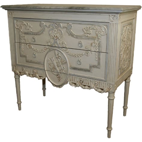 Available as a special order with marble top and custom painted finish.